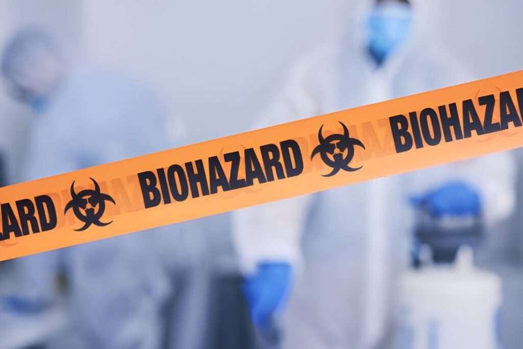 Cleaning up dangerous fluids requires special care. We wear full gear and follow strict rules to make the space safe.